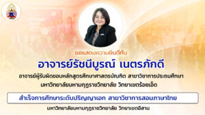 ขอแสดงความยินดีกับ อ.รัชนีบูรณ์ เนตรภักดี อาจารย์ผู้รับผิดชอบหลักสูตรศึกษาศาสตรบัณฑิต สาขาวิชาการประถมศึกษา ในโอกาสสำเร็จการศึกษาระดับปริญญาเอก สาขาวิชาการสอนภาษาไทย มหาวิทยาลัยมหามกุฏราชวิทยาลัย วิทยาเขตอีสาน