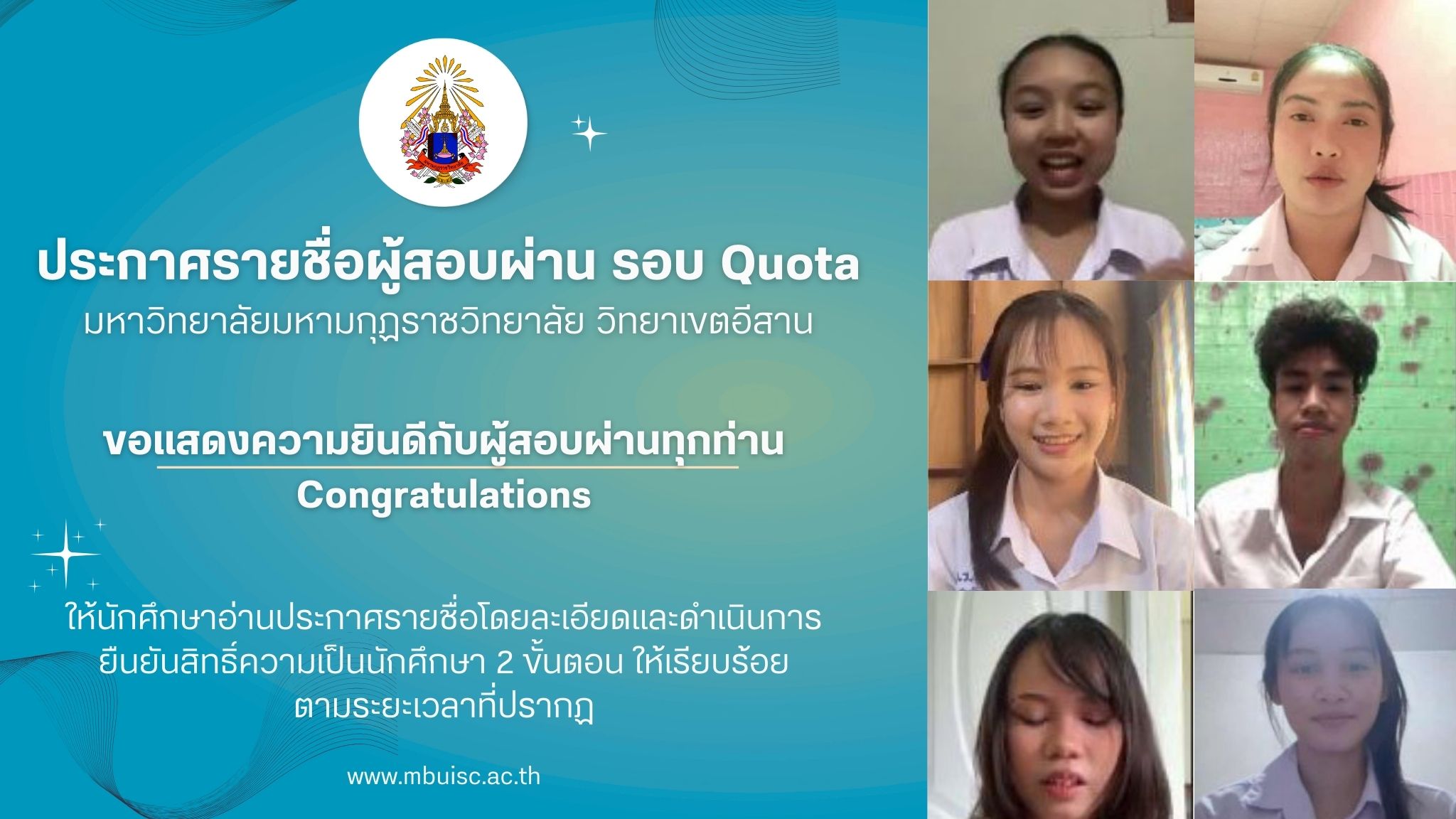 ประกาศรายชื่อผู้สอบผ่านนักศึกษาใหม่ ป.ตรี รอบโควตา (Quota) พ.ศ. 2569