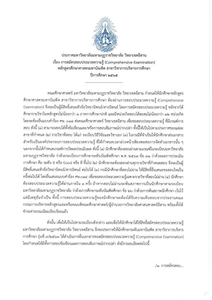 การสมัครสอบประมวลความรู้ Comprehensive Examinaion มหาบัณฑิต บริหารการศึกษา