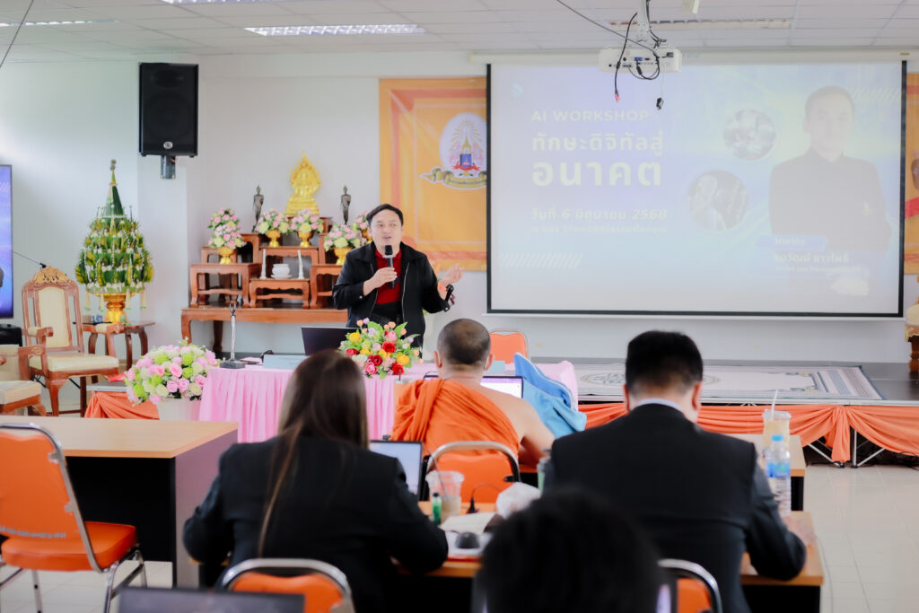 มหาวิทยาลัยมหามกุฏราชวิทยาลัย วิทยาเขตศรีธรรมาโศกราช ได้จัดอบรมพัฒนาศักยภาพบุคลากร ประจำปีงบประมาณ 2568 ในวันที่ 5-6 มิถุนายน 2568 โดยในวันที่สอง มีวิทยากรทั้ง 2 ท่าน ได้แก่ อ.คัมภีรภาพ คงสำรวย จาก มมร.วิทยาเขตอีสาน และ อ.ธนวัฒน์ ชาวโพธิ์ จาก มมร.วิทยาเขตศรีล้านช้าง เป็นวิทยากรถ่ายทอดความรู้เรื่องการใช้ Google Workspace AI และความรู้ทางด้านเทคโนโลยีสารสนเทศ ในการประยุกต์ใช้ในการทำงาน