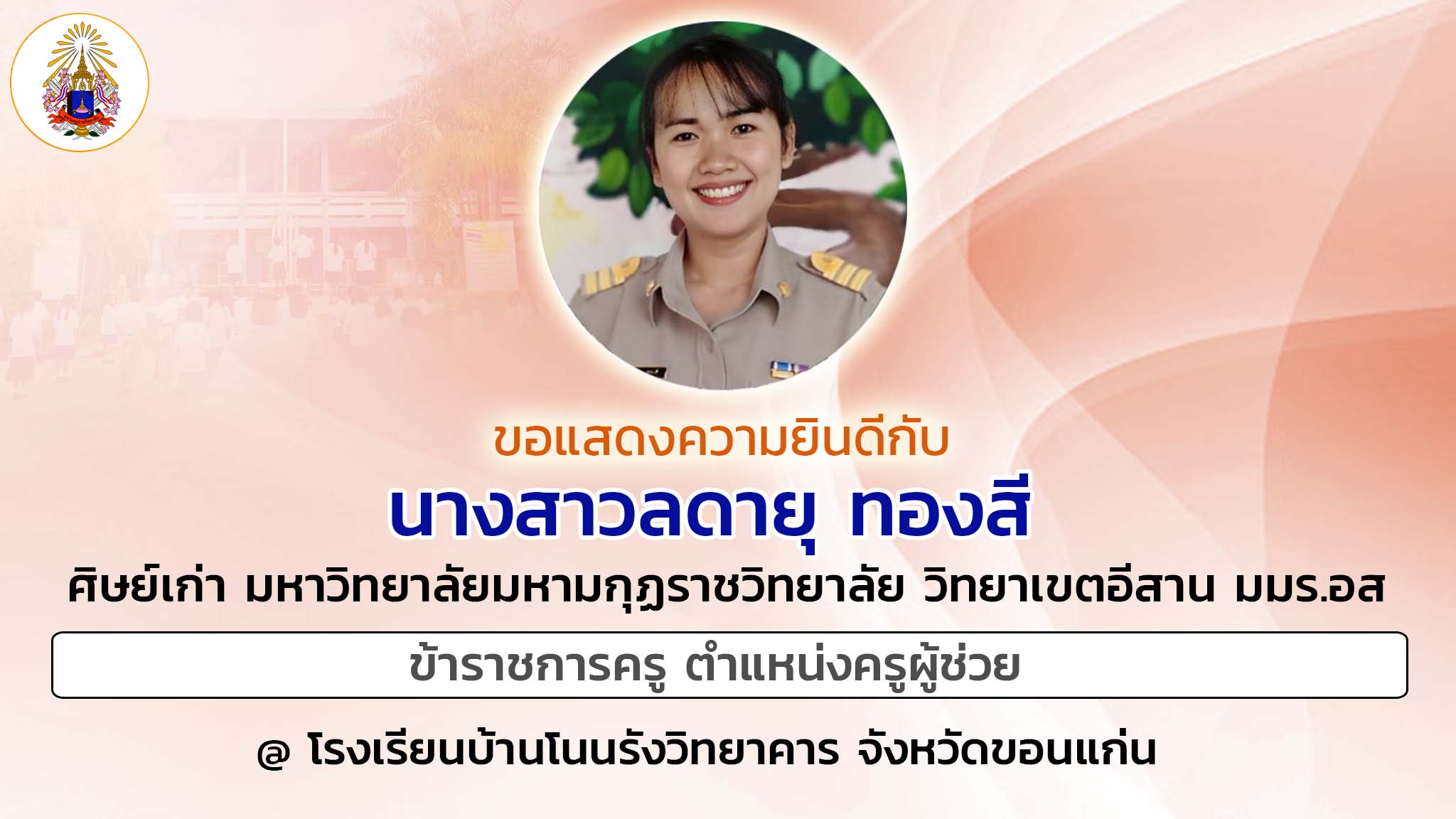 ขอแสดงความยินดีกับ นางสาวประวีณา ทองทรวง ศิษย์เก่า มหาวิทยาลัยมหามกุฏราชวิทยาลัย วิทยาเขตอีสาน มมร.อส. ข้าราชการครู คศ.1 @…