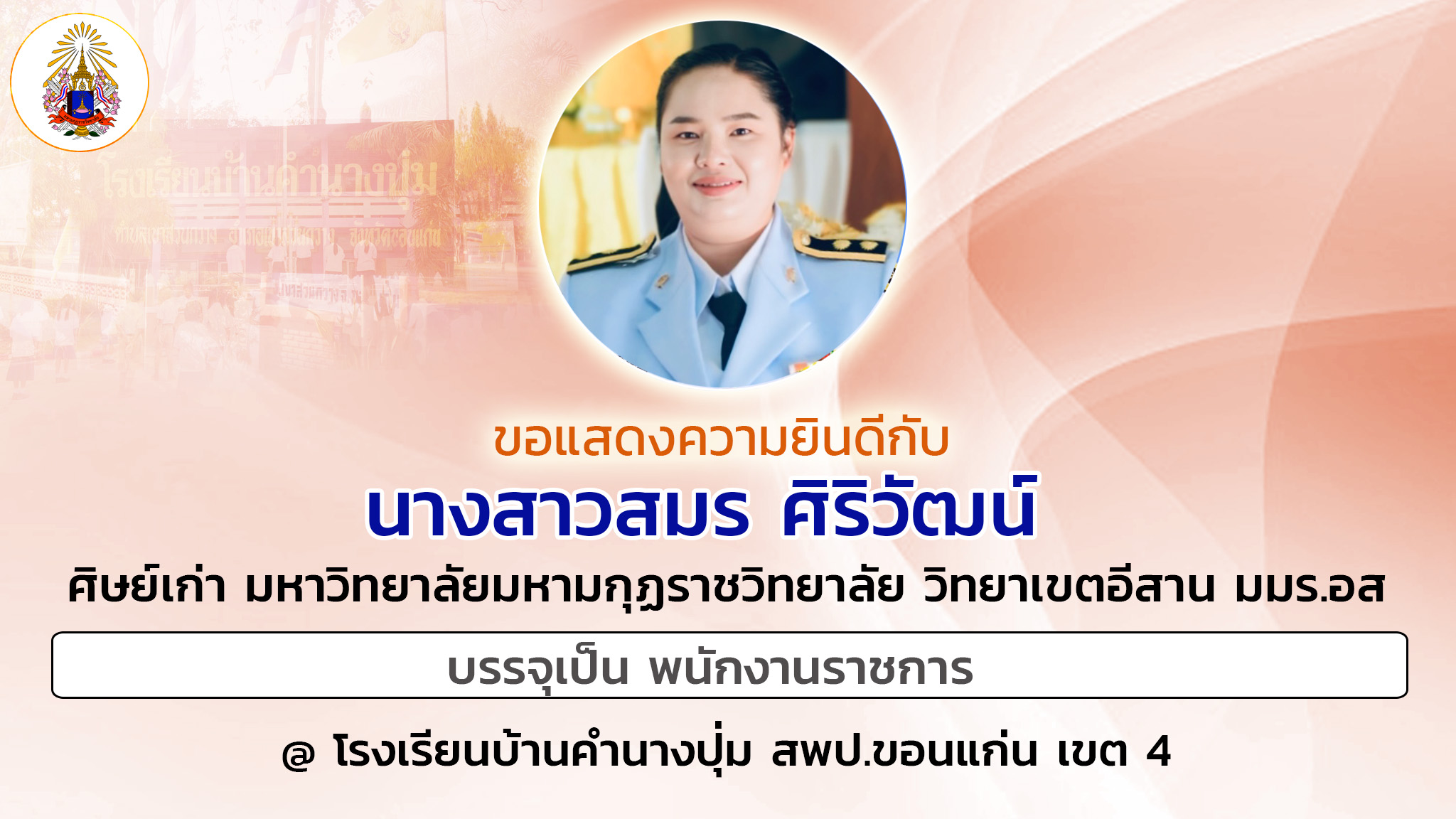 ขอแสดงความยินดีกับ นางสาวสมร ศิริวัฒน์ ศิษย์เก่ามหาวิทยาลัยมหามกุฏราชวิทยาลัย วิทยาเขตอีสาน มมร.อส จ.ขอนแก่น บรรจุเป็นพนักงานราชการ @ โรงเรียนบ้านคำนางปุ่ม…