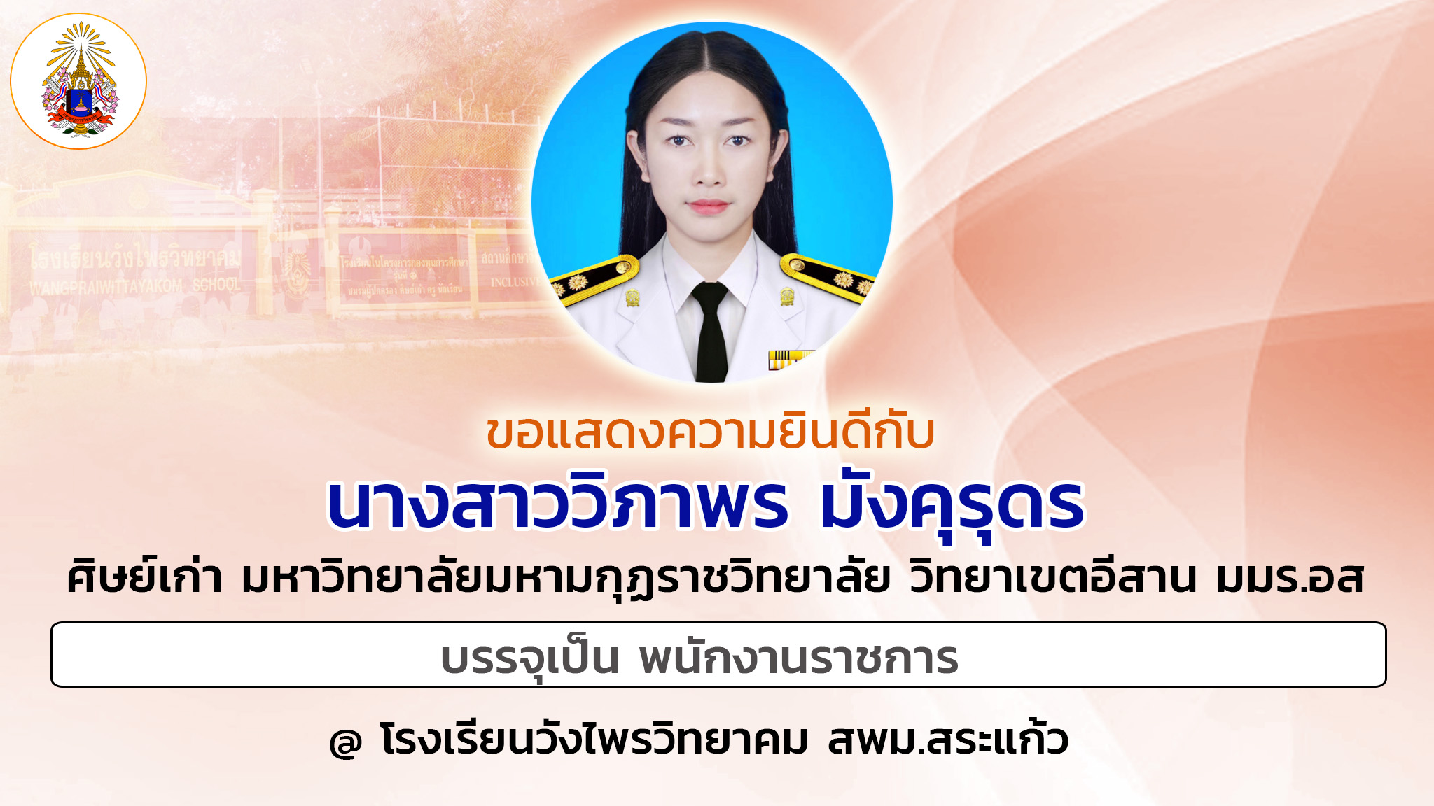 ขอแสดงความยินดีกับ นางสาววิภาพร มังคุรุดร ศิษย์เก่ามหาวิทยาลัยมหามกุฏราชวิทยาลัย วิทยาเขตอีสาน มมร.อส จ.ขอนแก่น บรรจุเป็นพนักงานราชการ @ โรงเรียนวังไพรวิทยาคม…