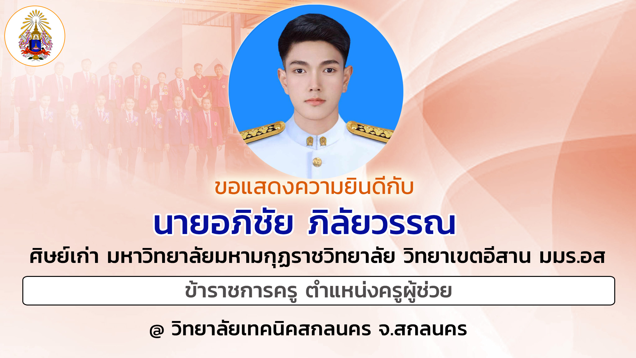 ขอแสดงความยินดีกับ นายอภิชัย ภิลัยวรรณ ศิษย์เก่ามหาวิทยาลัยมหามกุฏราชวิทยาลัย วิทยาเขตอีสาน มมร.อส จ.ขอนแก่น บรรจุเป็นข้าราชการครู ตำแหน่งครูผู้ช่วย @วิทยาลัยเทคนิคสกลนคร…