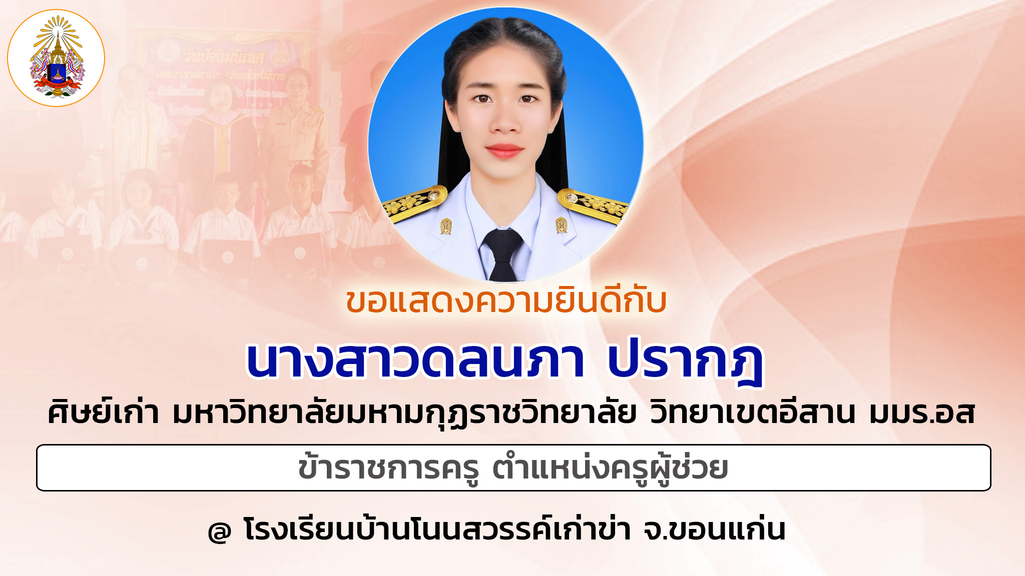 ขอแสดงความยินดีกับ นางสาวดลนภา ปรากฏ ศิษย์เก่ามหาวิทยาลัยมหามกุฏราชวิทยาลัย วิทยาเขตอีสาน มมร.อส จ.ขอนแก่น บรรจุเป็นข้าราชการครู ตำแหน่งครูผู้ช่วย @โรงเรียนบ้านโนนสวรรค์เก่าข่า…