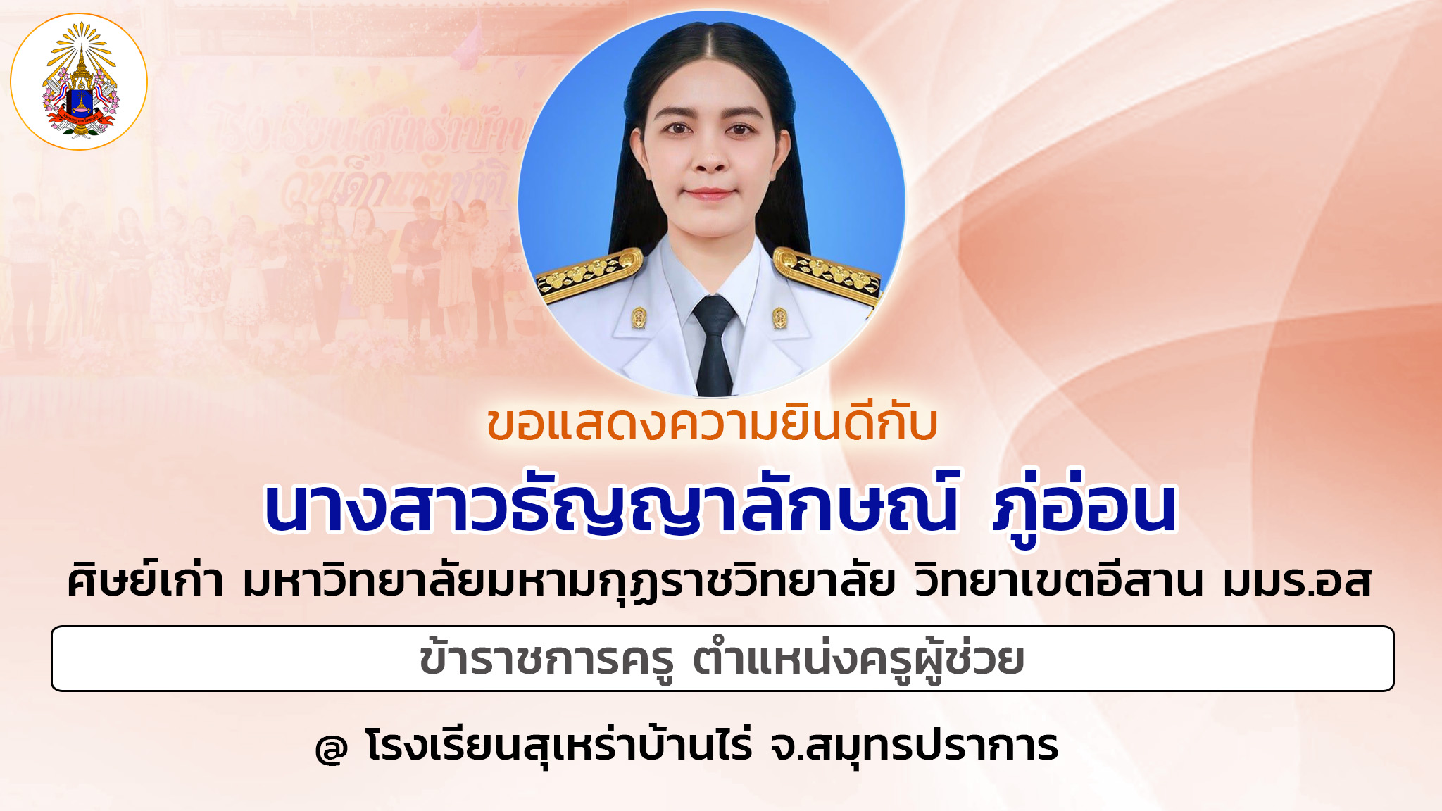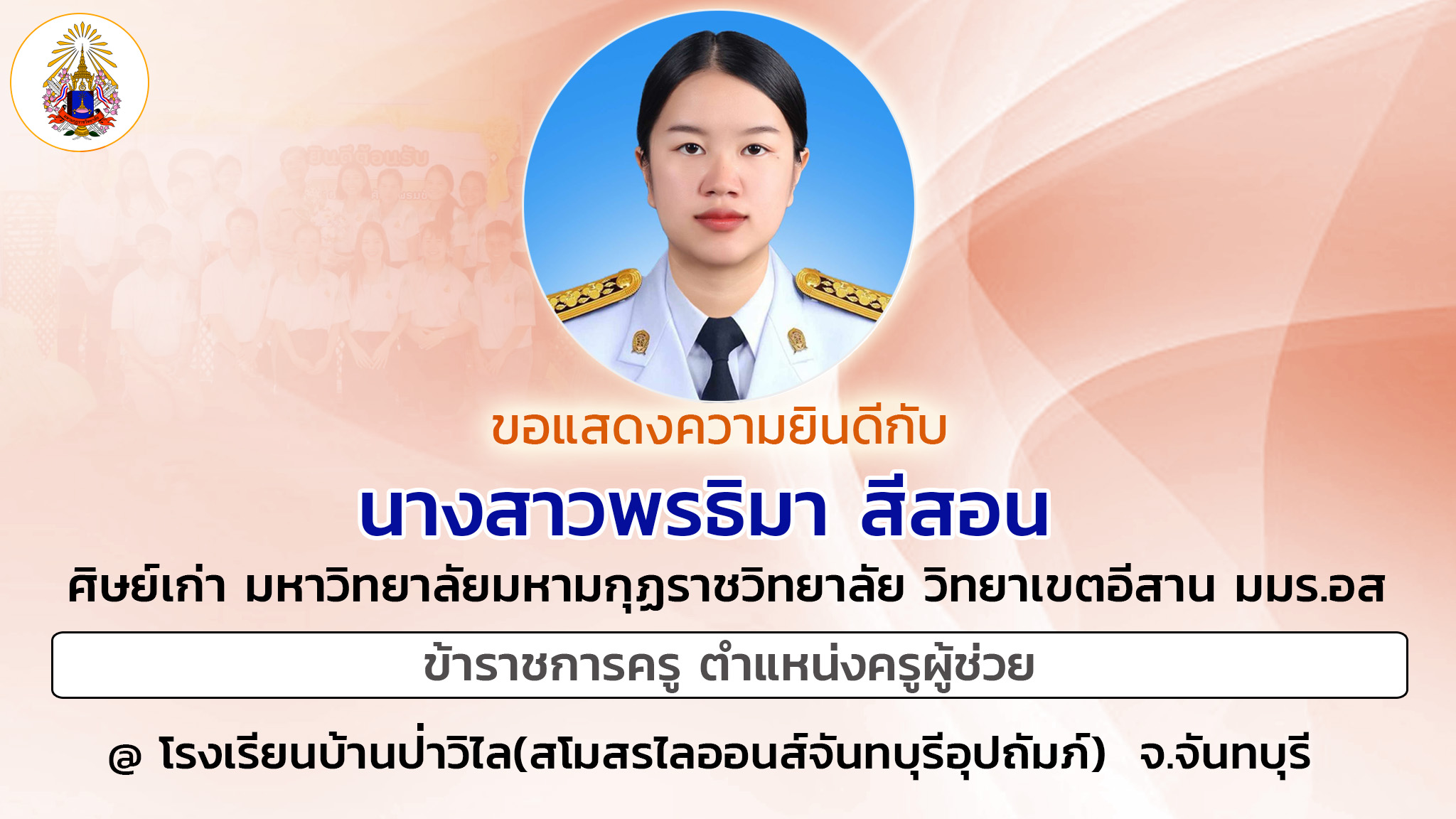 ขอแสดงความยินดีกับ นางสาวพัชรีพร ศรีอุทธา ศิษย์เก่า มหาวิทยาลัยมหามกุฏราชวิทยาลัย วิทยาเขตอีสาน มมร.อส. ข้าราชการครู คศ.1 @…