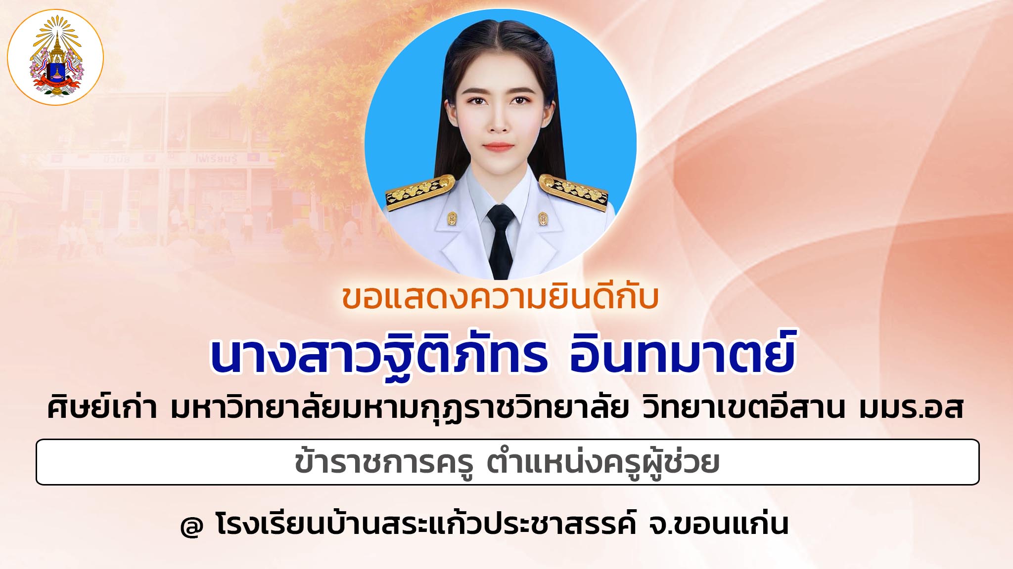 ขอแสดงความยินดีกับ นางสาวขนิษฐา แมนละกิจ ศิษย์เก่า มหาวิทยาลัยมหามกุฏราชวิทยาลัย วิทยาเขตอีสาน มมร.อส จ.ขอนแก่น บรรจุเป็นข้าราชการครู :…