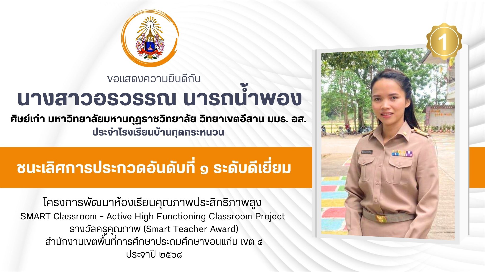 ขอแสดงความยินดีกับ นางสาวอรวรรณ นารถน้ำพอง ศิษย์เก่ามหาวิทยาลัยมหามกุฏราชวิทยาลัย วิทยาเขตอีสาน มมร. อส. ประจำโรงเรียนบ้านกุดกระหนวน ชนะเลิศการประกวดอันดับที่ 1…