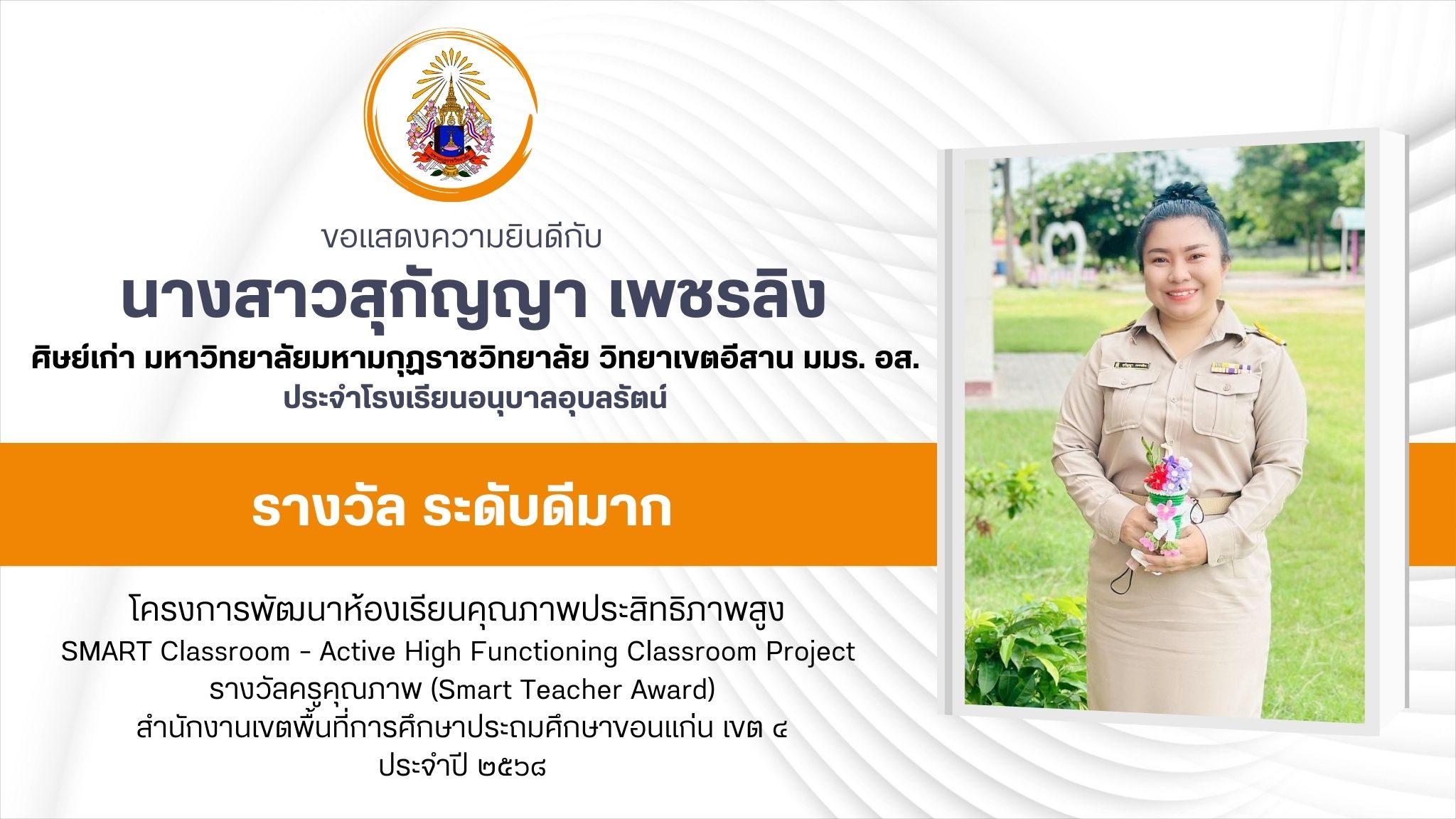 ขอแสดงความยินดีกับ นางสาวสุกัญญา เพชรลิง ศิษย์เก่า มหาวิทยาลัยมหามกุฏราชวิทยาลัย วิทยาเขตอีสาน มมร. อส. ประจำโรงเรียนอนุบาลอุบลรัตน์ รางวัลระดับดีมาก…