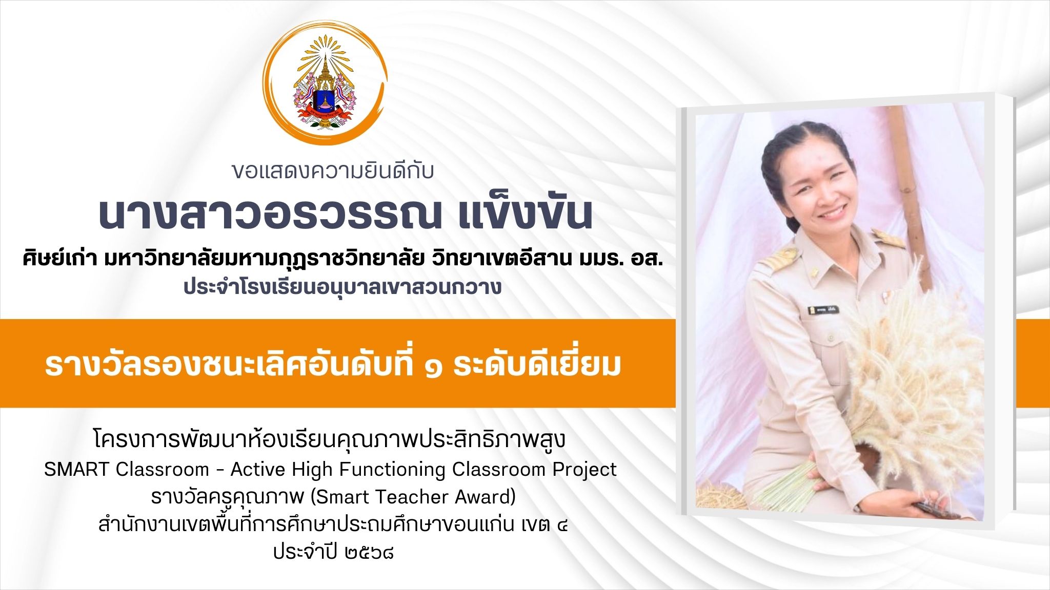 ขอแสดงความยินดีกับ นางสาวอรวรรณ แข็งขัน ศิษย์เก่า มหาวิทยาลัยมหามกุฏราชวิทยาลัย วิทยาเขตอีสาน มมร. อส. ประจำโรงเรียนอนุบาลเขาสวนกวาง รางวัลรองชนะเลิศอันดับที่…