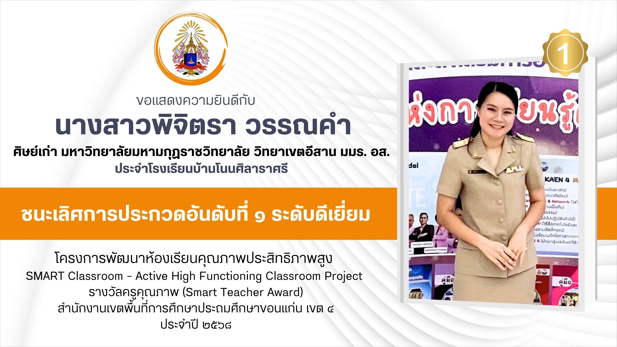ขอแสดงความยินดีกับ นางสาวพิจิตรา วรรณคำ ศิษย์เก่า มหาวิทยาลัยมหามกุฏราชวิทยาลัย วิทยาเขตอีสาน มมร. อส. ประจำโรงเรียนบ้านโนนศิลาราศรี ชนะเลิศการประกวดอันดับที่…