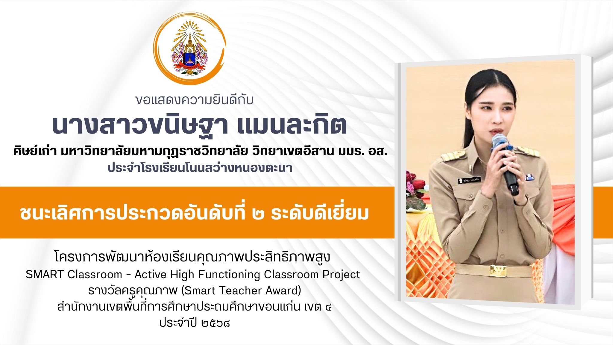 ขอแสดงความยินดีกับ นางสาวขนิษฐา แมนละกิต ศิษย์เก่า มหาวิทยาลัยมหามกุฏราชวิทยาลัย วิทยาเขตอีสาน มมร. อส. ประจำโรงเรียนบ้านโนนศิลาราศรี รองชนะเลิศการประกวดอันดับที่…