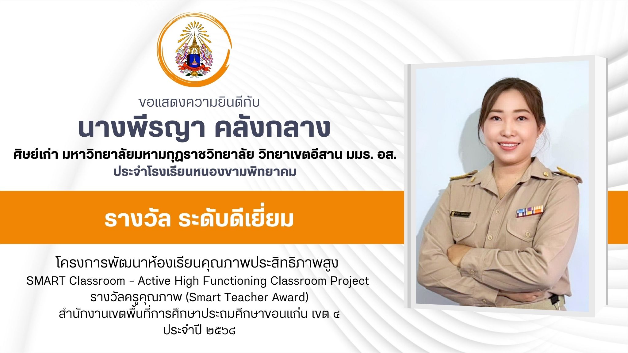 ขอแสดงความยินดีกับ นางพีรญา คลังกลาง ศิษย์เก่า มหาวิทยาลัยมหามกุฏราชวิทยาลัย วิทยาเขตอีสาน มมร. อส. ประจำโรงเรียนหนองขามพิทยาคม รางวัลระดับดีเยี่ยม…