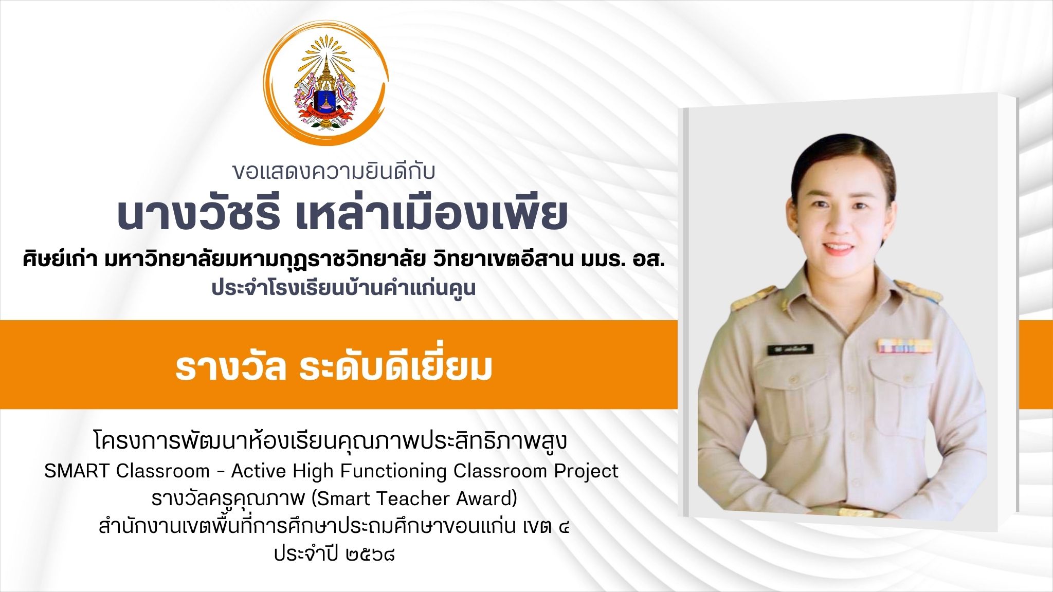 ขอแสดงความยินดีกับ นางวัชรี เหล่าเมืองเพีย ศิษย์เก่า มหาวิทยาลัยมหามกุฏราชวิทยาลัย วิทยาเขตอีสาน มมร. อส. ประจำโรงเรียนบ้านคำแก่นคูน รางวัลระดับดีเยี่ยม…