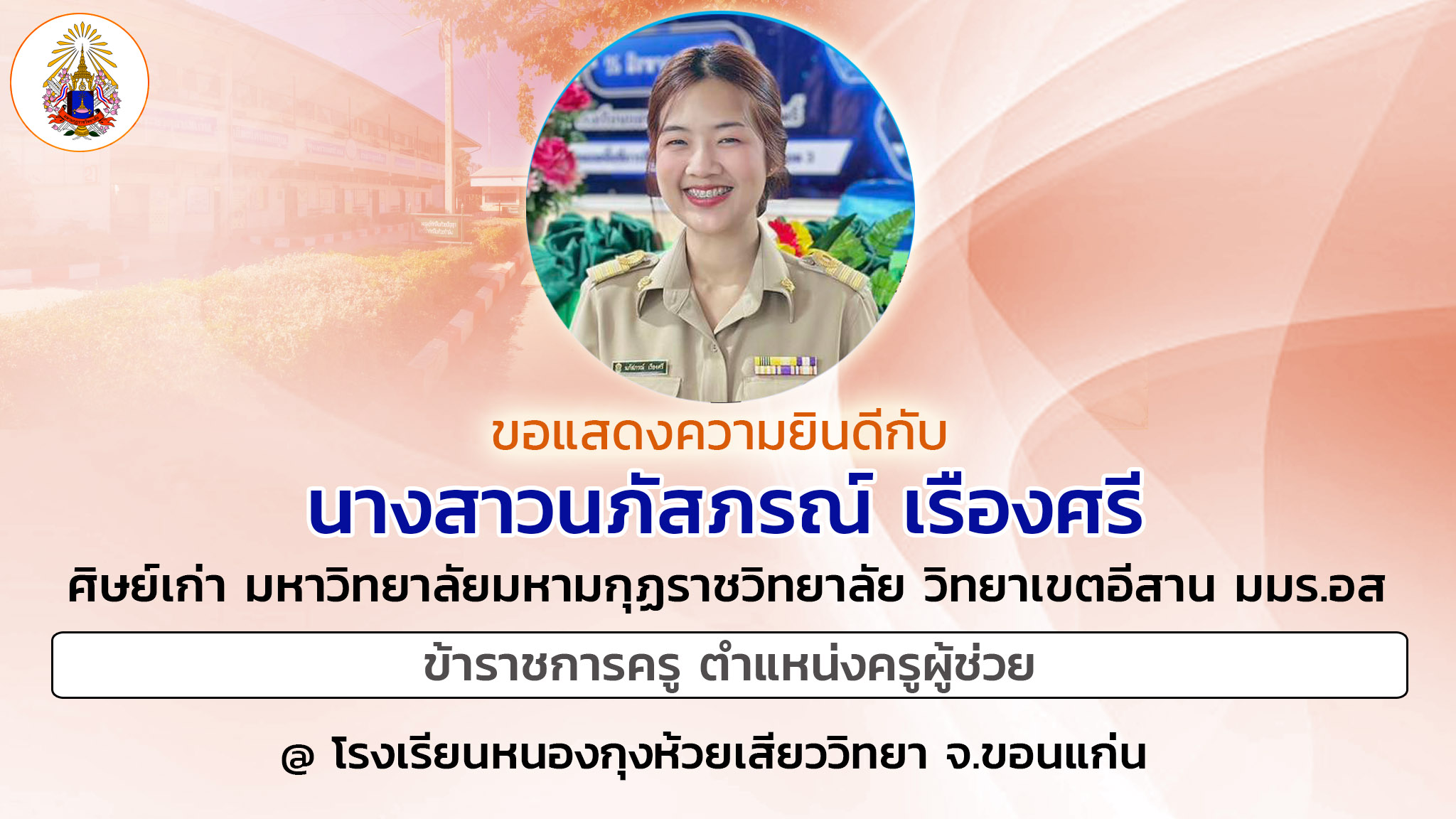ขอแสดงความยินดีกับ นางสาวนภัสภรณ์ เรืองศรี ศิษย์เก่ามหาวิทยาลัยมหามกุฏราชวิทยาลัย วิทยาเขตอีสาน มมร.อส จ.ขอนแก่น บรรจุเป็นข้าราชการครู ตำแหน่งครูผู้ช่วย @โรงเรียนหนองกุงห้วยเสียววิทยา…
