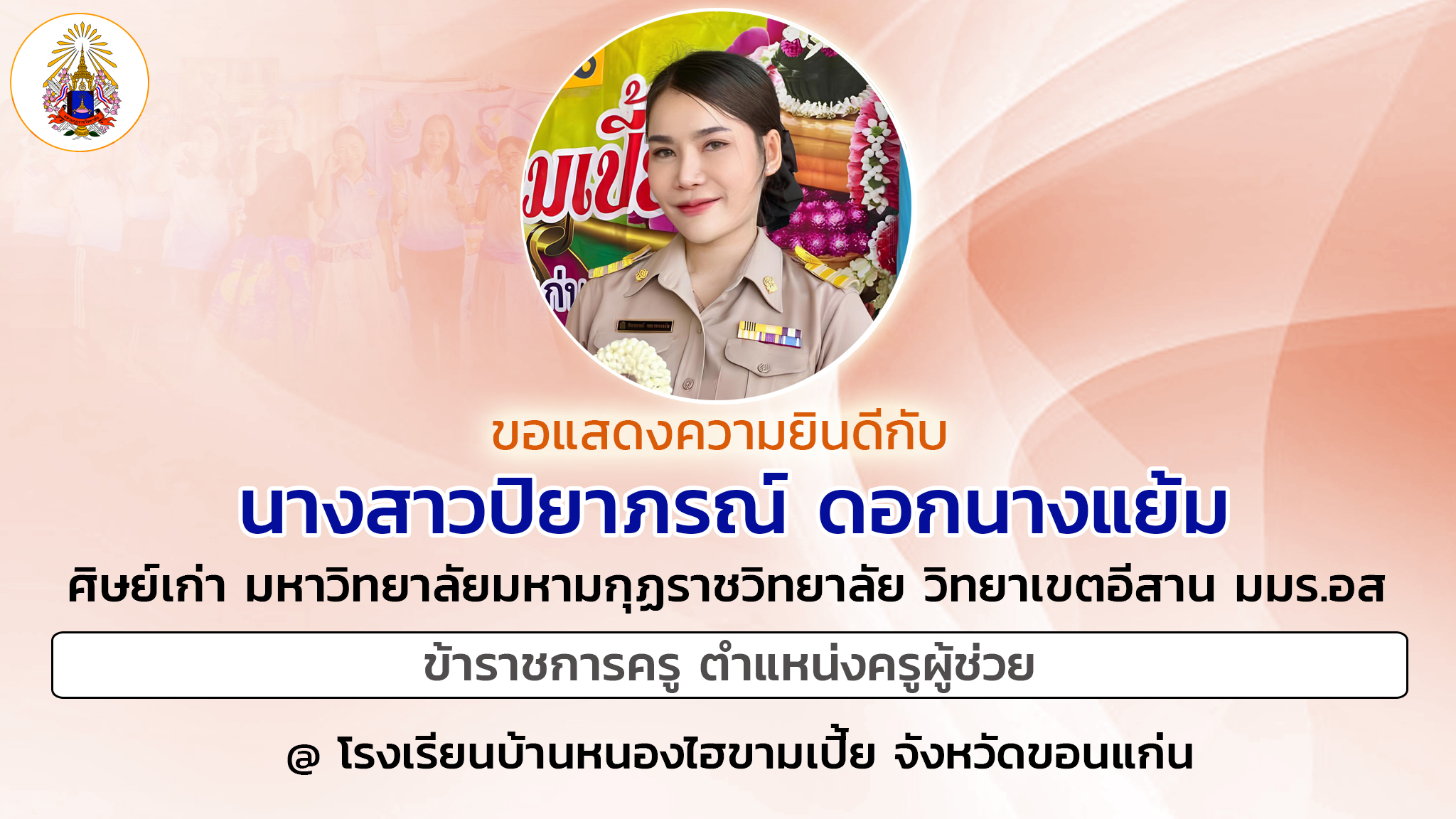 ขอแสดงความยินดีกับ นางสาวปิยาภรณ์ ดอกนางแย้ม ศิษย์เก่ามหาวิทยาลัยมหามกุฏราชวิทยาลัย วิทยาเขตอีสาน มมร.อส จ.ขอนแก่น บรรจุเป็นข้าราชการครู ตำแหน่งครูผู้ช่วย @โรงเรียนบ้านหนองไฮขามเปี้ย…