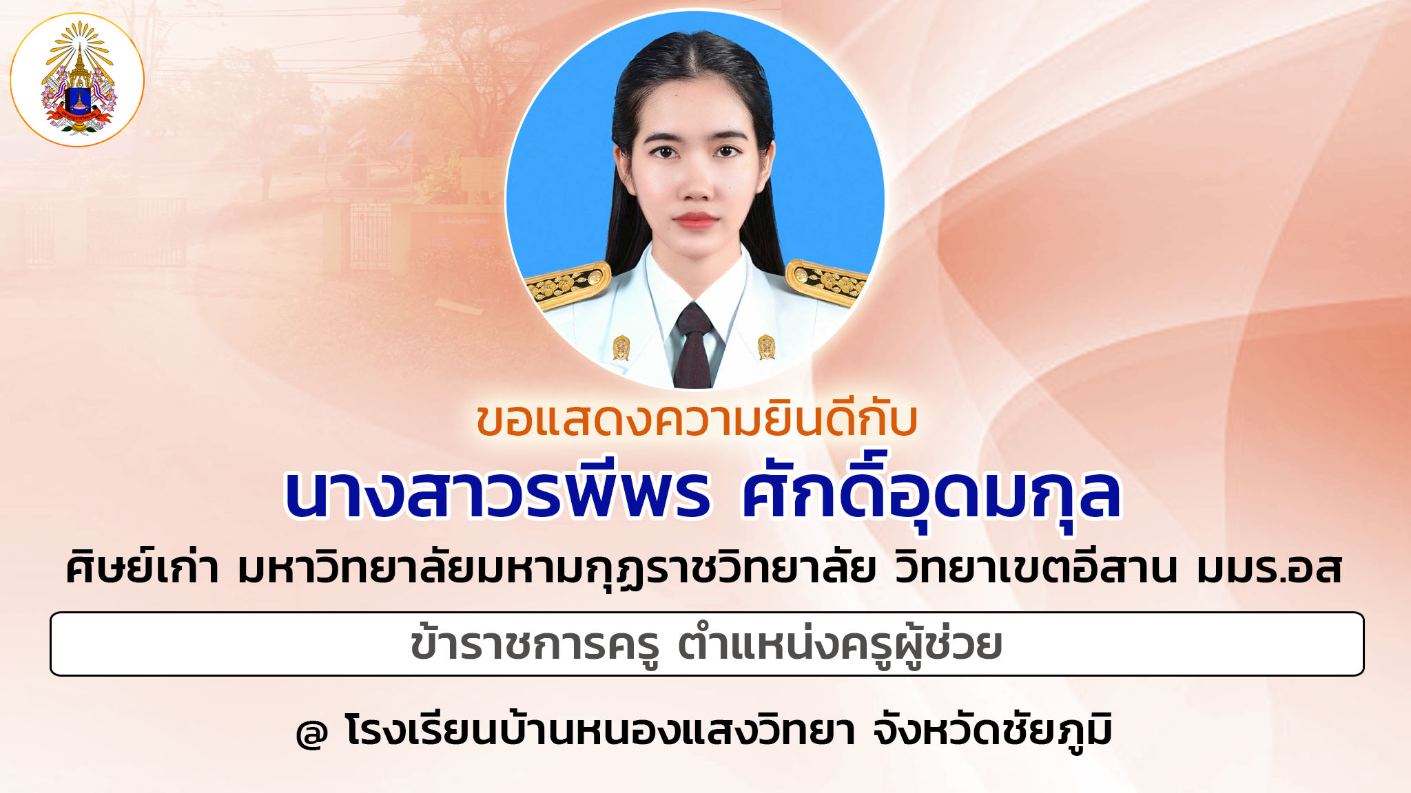 ขอแสดงความยินดีกับ นางสาวรพีพร ศักดิ์อุดมกุล ศิษย์เก่ามหาวิทยาลัยมหามกุฏราชวิทยาลัย วิทยาเขตอีสาน มมร.อส จ.ขอนแก่น บรรจุเป็นข้าราชการครู ตำแหน่งครูผู้ช่วย @โรงเรียนบ้านหนองแสงวิทยา…