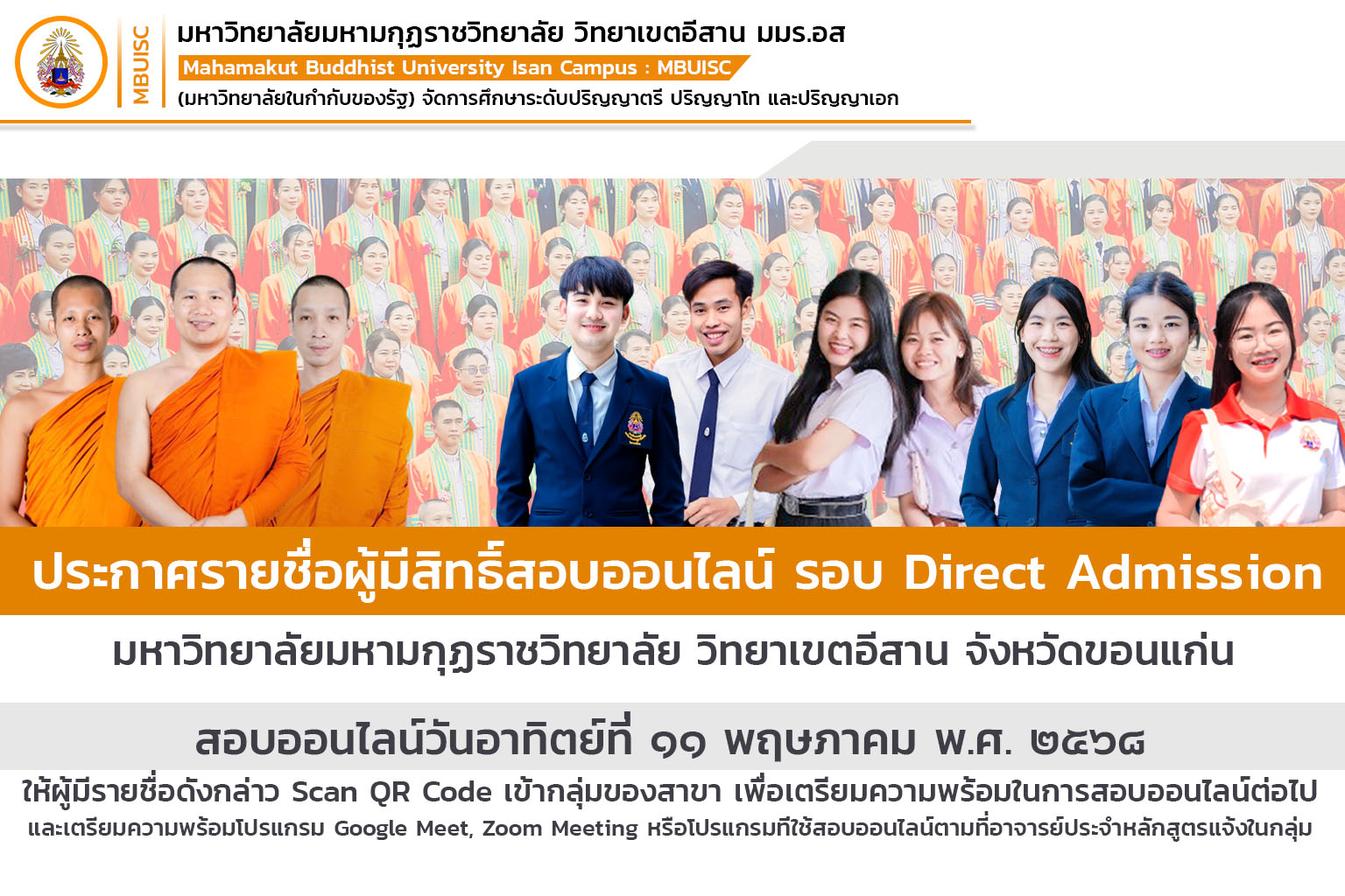 ประกาศรายชื่อผู้มีสิทธิ์สอบ รอบที่ 4 Direct Admission ปริญญาตรี ประจำปี 2568