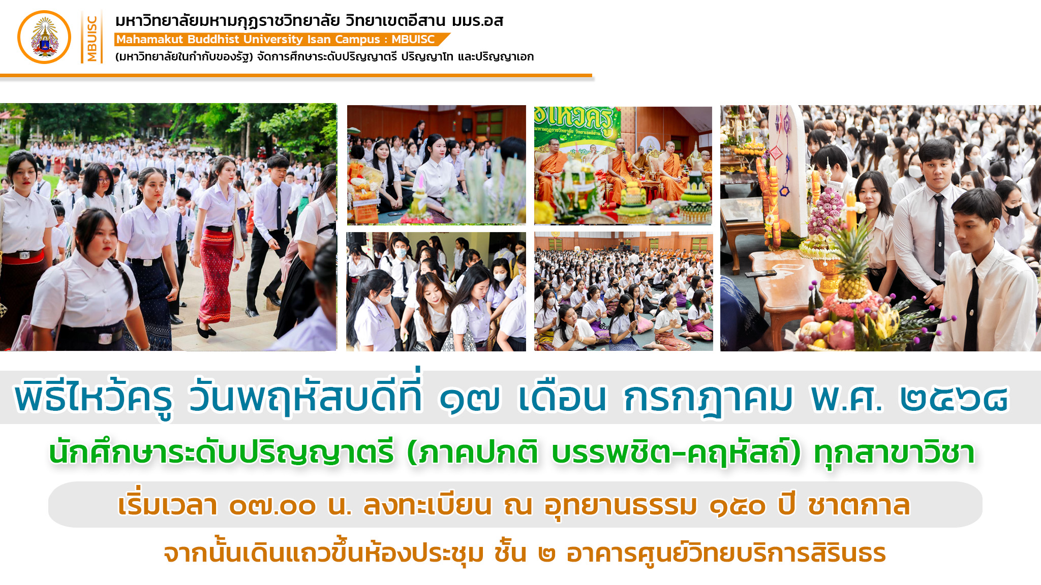 กำหนดการพิธ๊ไหว้ครู มหาวิทยาลัยมหามกุฏราชวิทยาลัย วิทยาเขตอีสาน มมร.อส 2568
