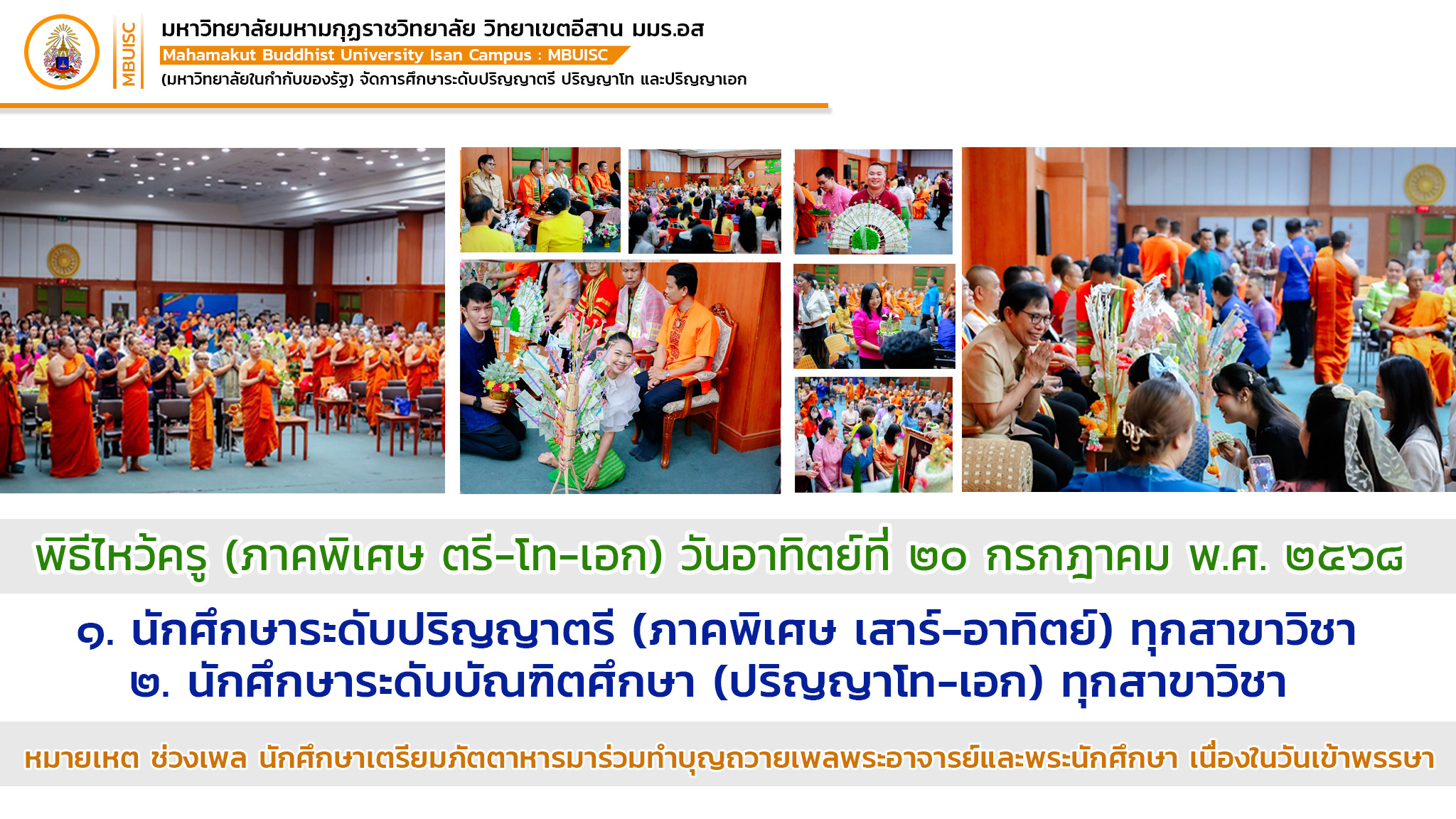 กำหนดการพิธีไหว้ครู มมร.อส. 2568 (ภาคพิเศษ ตรี-โท-เอก) ณ มหาวิทยาลัยมหามกุฏราชวิทยาลัย วิทยาเขตอีสาน มมร อส…