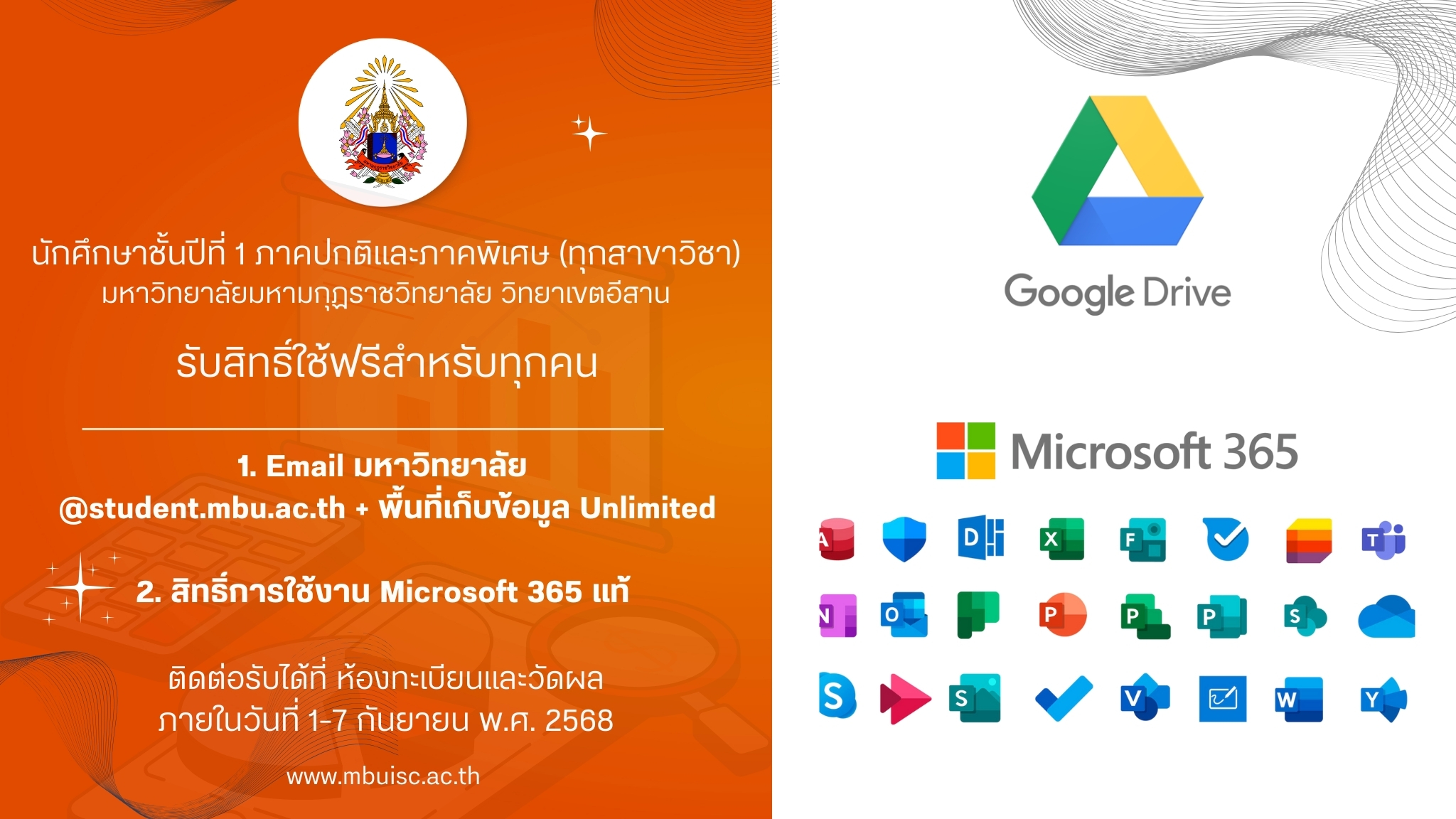 รับสิทธิ์การใช้งาน Email ของมหาวิทยาลัย+พื้นที่เก็บข้อมูล Unlimited และ สิทธิ์การใช้งาน Microsoft 365 แท้