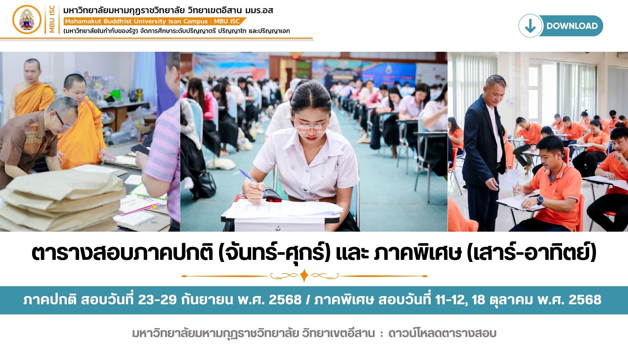 มหาวิทยาลัยมหามกุฏราชวิทยาลัย วิทยาเขตอีสาน สอบวัดผลปลายภาค 1/2568 ภาคปกติ สอบวันที่ 23-29 กันยายน 2568 และ…