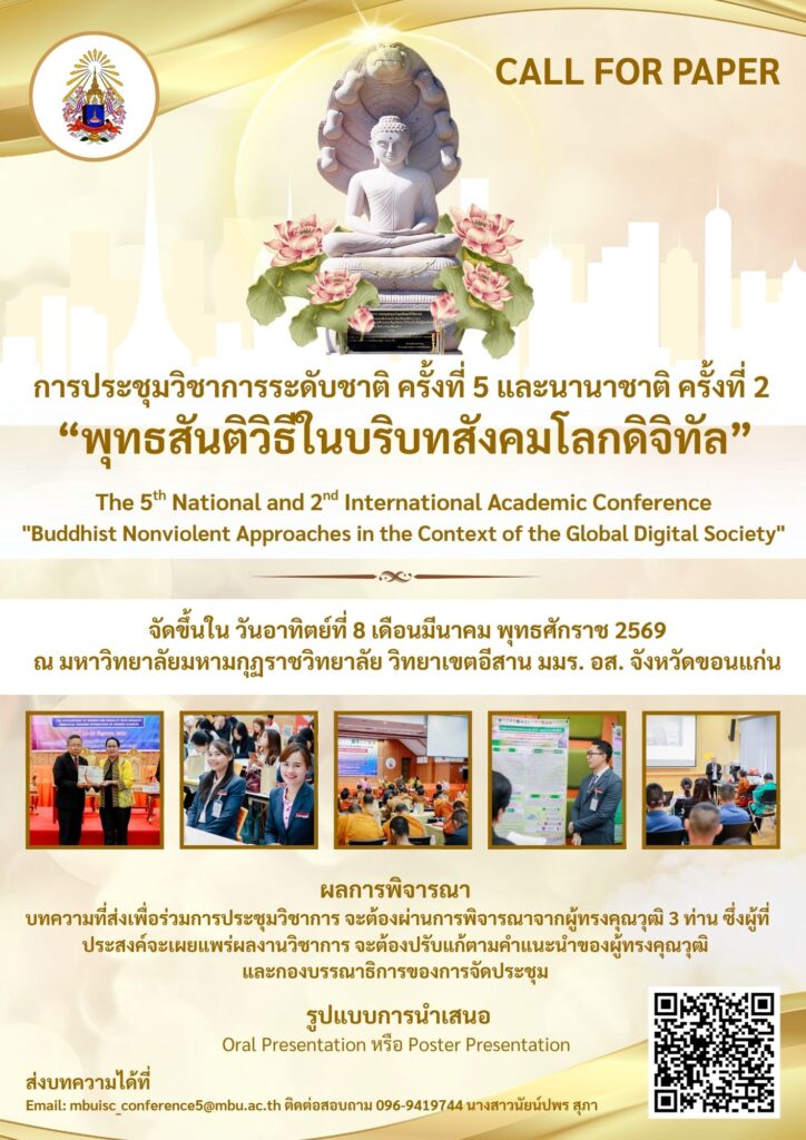 การจัดการประชุมและการนำเสนอบทความวิชาการระดับชาติ ครั้งที่ 5 และนานาชาติ ครั้งที่ 2 ภายใต้แนวคิด “พุทธสันติวิธีในบริบทสังคมโลกดิจิทัล” จึงมีความสำคัญอย่างยิ่ง ในการเปิดพื้นที่ทางวิชาการสำหรับนักวิชาการ นักวิจัย คณาจารย์ นักศึกษา และผู้สนใจทั้งในประเทศและต่างประเทศ ได้แลกเปลี่ยนองค์ความรู้ งานวิจัย และบทความเชิงวิชาการที่บูรณาการพุทธธรรมกับการสร้างสันติภาพ การพัฒนาสังคม และการใช้เทคโนโลยีดิจิทัลอย่างมีจริยธรรม
