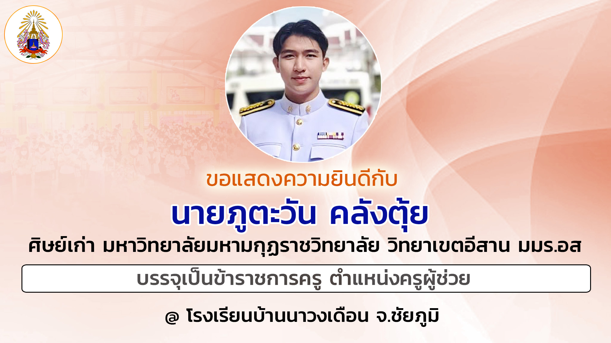 ขอแสดงความยินดีกับ นายภูตะวัน คลังตุ้ย ศิษย์เก่า มหาวิทยาลัยมหามกุฏราชวิทยาลัย วิทยาเขตอีสาน มมร.อส จ.ขอนแก่น บรรจุเป็นข้าราชการครู ตำแหน่งครูผู้ช่วย…