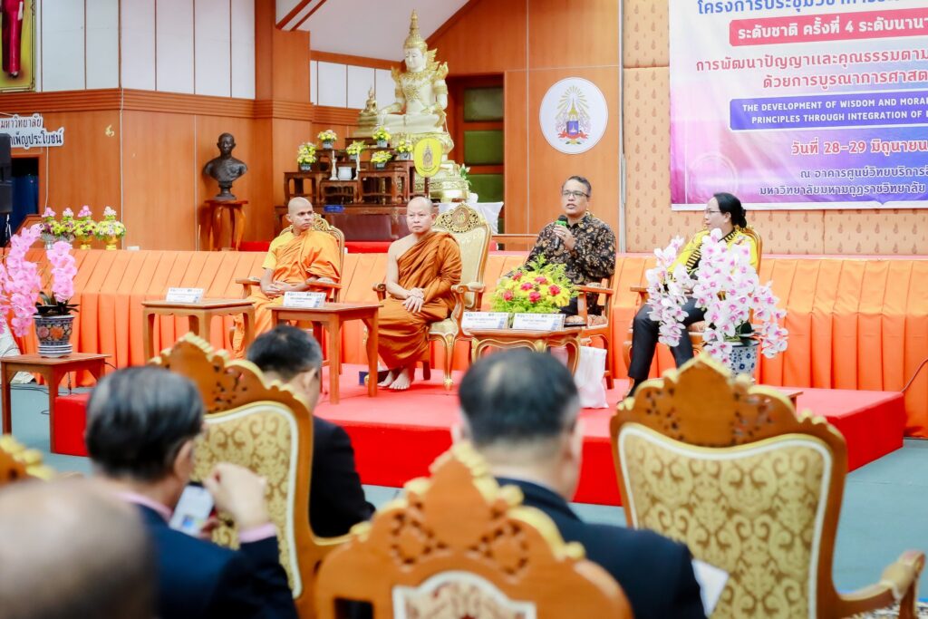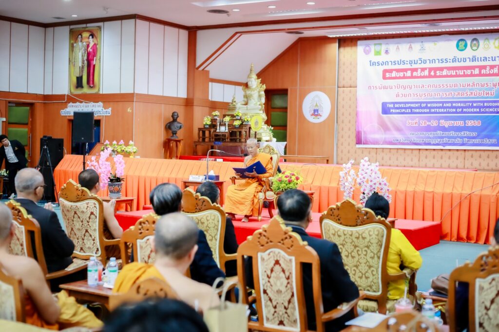(ช่วงเช้า) เมื่อวันที่ 29 มิถุนายน 2568 มหาวิทยาลัยมหามกุฏราชวิทยาลัย วิทยาเขตอีสาน มมร.อส. ได้จัดประชุมวิชาการระดับชาติครั้งที่ 4 และนานาชาติ ครั้งที่ 1 โดยวันของการนำเสนอผลงานวิชาการ พร้อมทั้งหน่วยงานรวม 13 แห่ง โดยในช่วงเช้าเป็นการแสวนา โดย Ven. Sudhiro Bhikku / Ven. Dr. Divulapelesse Wimalanada Thero / Prof.Dr. I Gede Sutarya / Prof. Dr. Tiwi Etika ในเรื่อง THE DEVLOPMENT OF WISDOM AND MORALITY WITH BUDDHIST PRINCIPLES THROUGH INTEGRATION OF MODERN SCIENCES จากนั้นเป็นการรับมอบโล่เจ้าภาพร่วมทั้ง 13 มหาวิทยาลัย ได้แก่ กระทรวงการอุดมศึกษา วิทยาศาสตร์ วิจัยและนวัตกรรม (อว.)