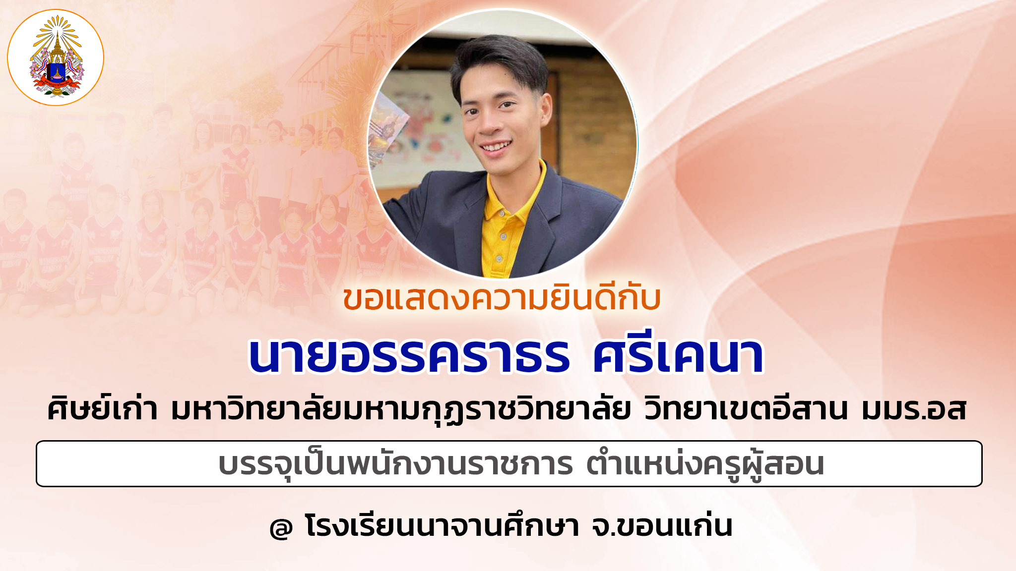 ขอแสดงความยินดีกับ นายอรรคราธร ศรีเคนา ศิษย์เก่ามหาวิทยาลัยมหามกุฏราชวิทยาลัย วิทยาเขตอีสาน มมร.อส จ.ขอนแก่น บรรจุเป็นพนักงานราชการ ตำแหน่งครูผู้สอน โรงเรียนนาจานศึกษา…
