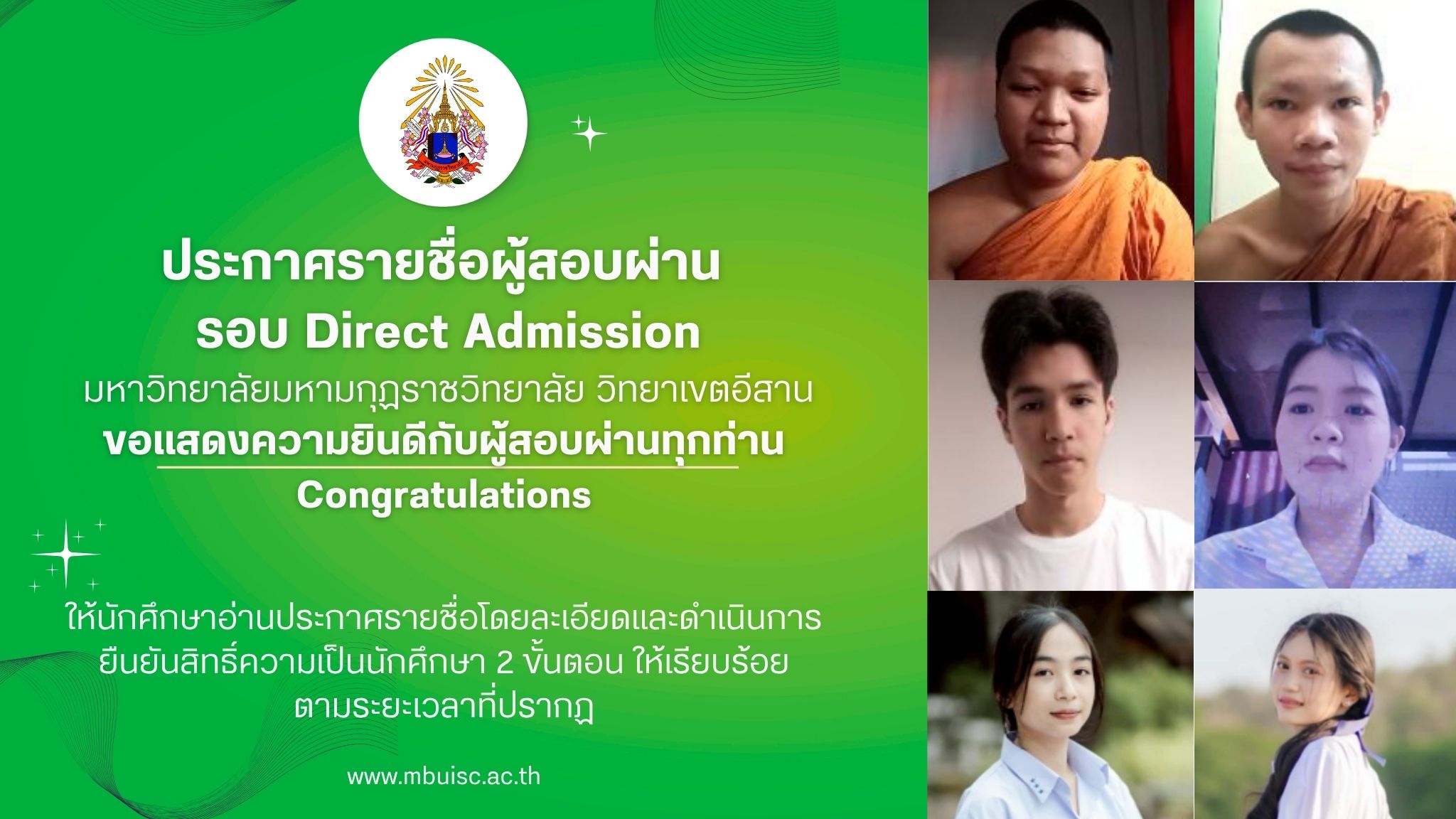 ประกาศรายชื่อผู้มีสิทธิ์สอบ รอบ Direct Admisson ประจำปีการศึกษา 2569 มหาวิทยาลัยมหามกุฏราชวิทยาลัย วิทยาเขตอีสาน ให้บุคคลผู้มีรายชื่อตามประกาศ scan…