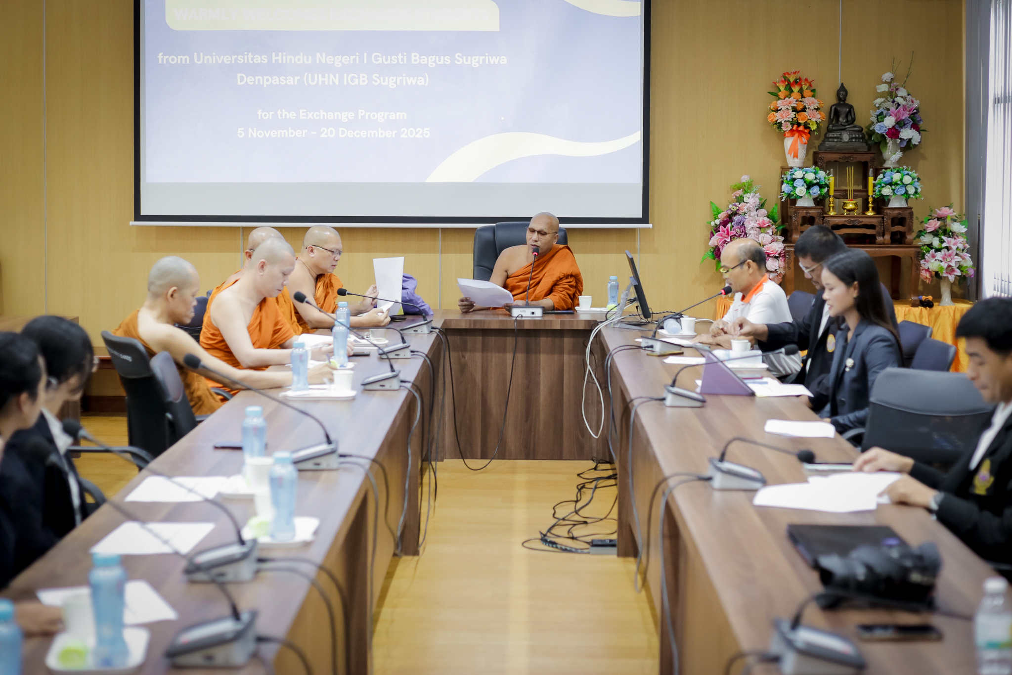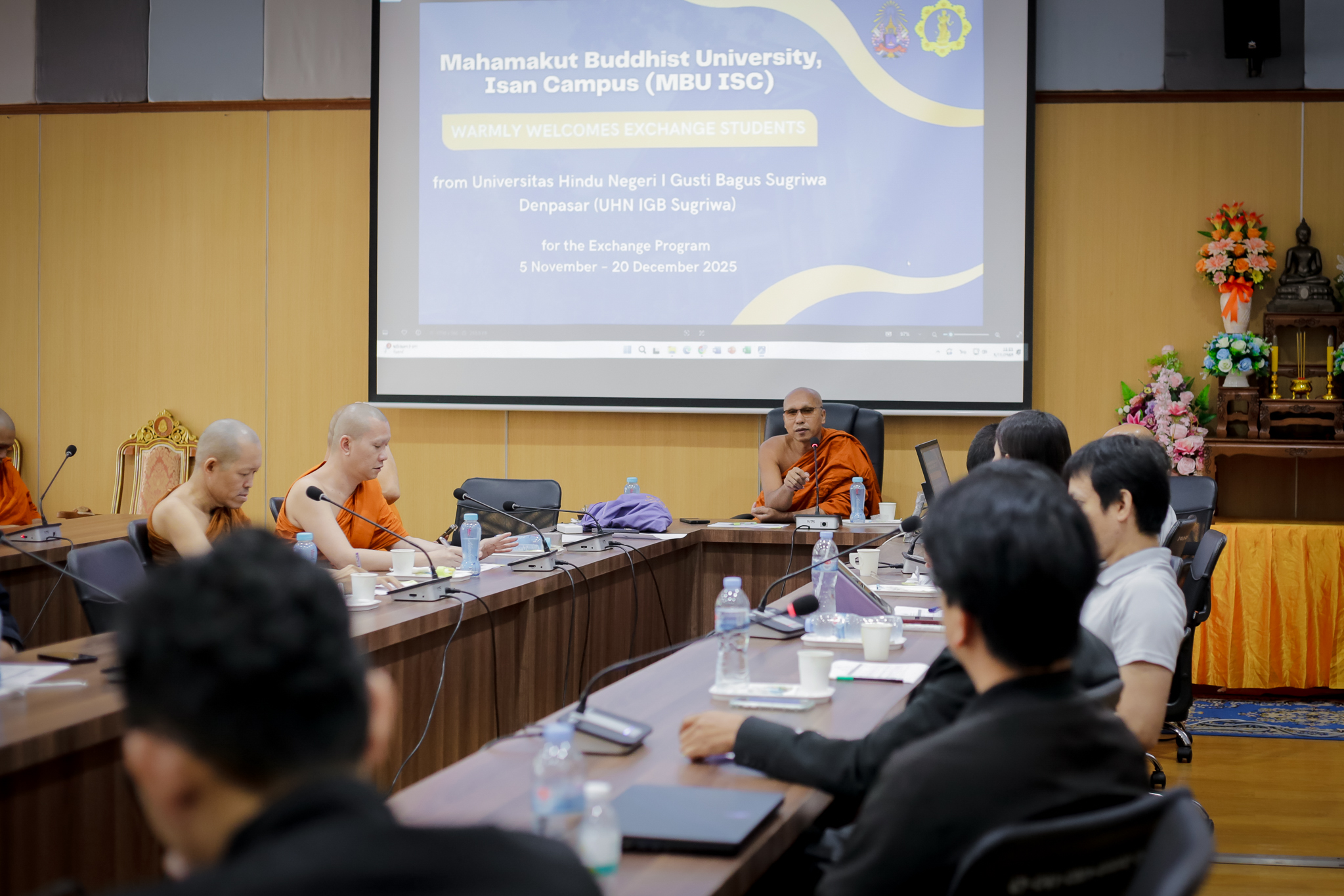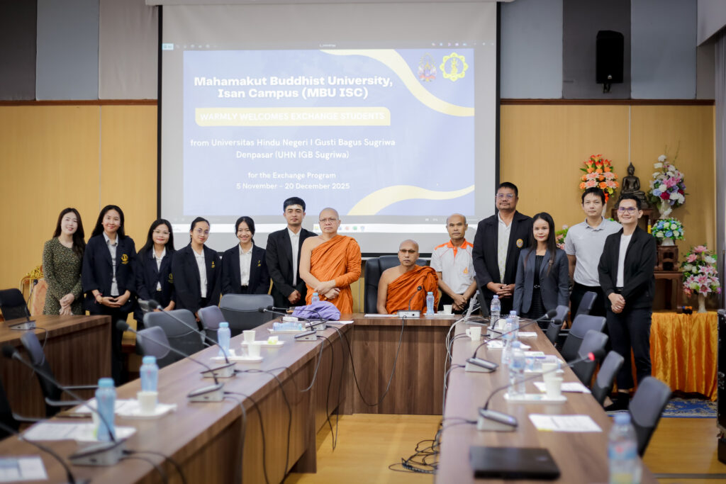มหาวิทยาลัยมหามกุฏราชวิทยาลัย วิทยาเขตอีสาน โดย พระสุธีวชิรธรรม ผศ.ดร. รองอธิการบดี ได้จัดปฐมนิเทศ ต้อนรับนักศึกษา Exchange Student from ประเทศอินโดนิเซีย พร้อมด้วยคณะอาจารย์และนักศึกษา Nk Komang Tri Wahyuni P. Ni Komang Ayu Artha Givana. Ni Komang Sri Diantari. Tjokorda Istri Sindy จาก UHN IGB Sugriwa